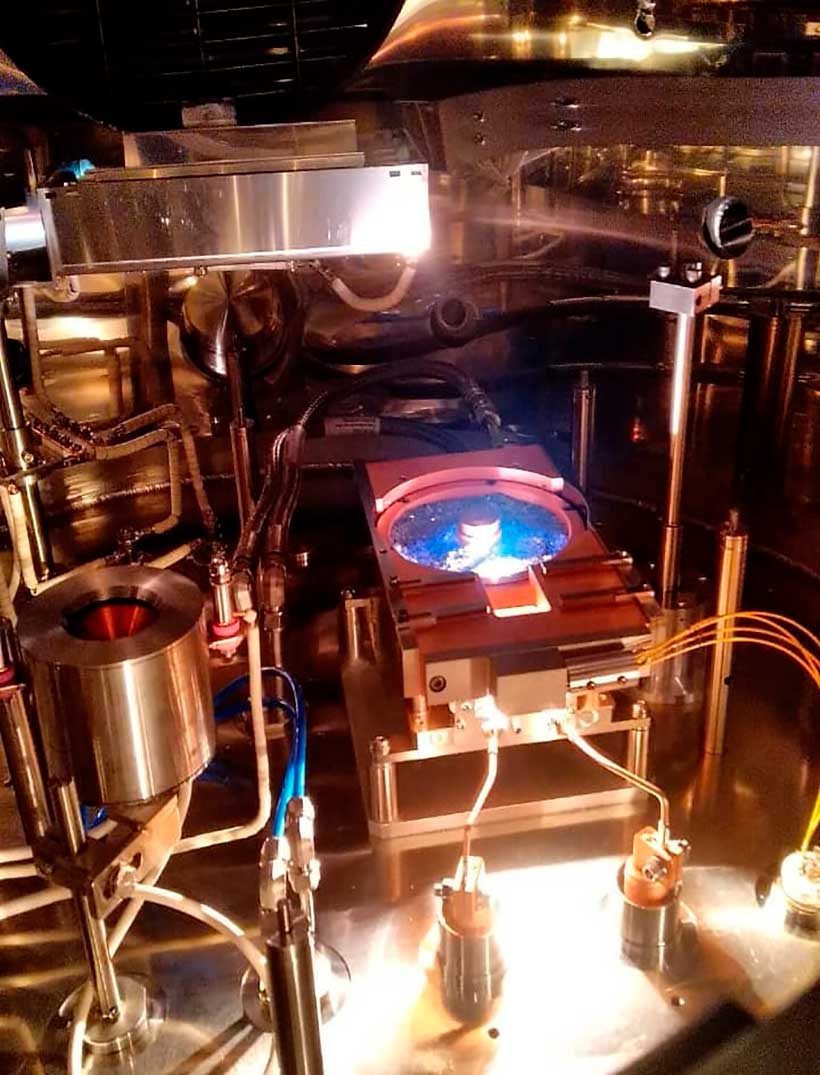 Электронно-лучевой испаритель размещается в камере, где поддерживается уровень вакуума 10-4 Па, необходимый для минимизации влияния остаточного газа на эффективность прохождения электронного луча, и исключение загрязнений другими материалами структуры получаемой пленки.