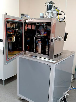 - 4 технологических устройства: 3 магнетрона, 1 многоячеечный ионный источник, 8-позиционный подложкодержатель